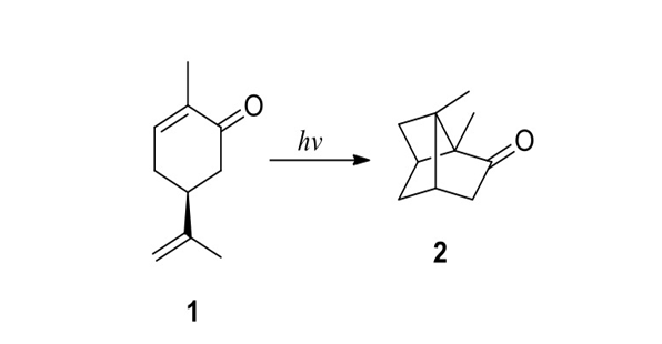 La reazione fotochimica del carvone viene poi ripresa da Büchi nel 1957 [7]. Büchi rifà la reazione e ottiene il prodotto di isomerizzazione con una resa del 9.4%.